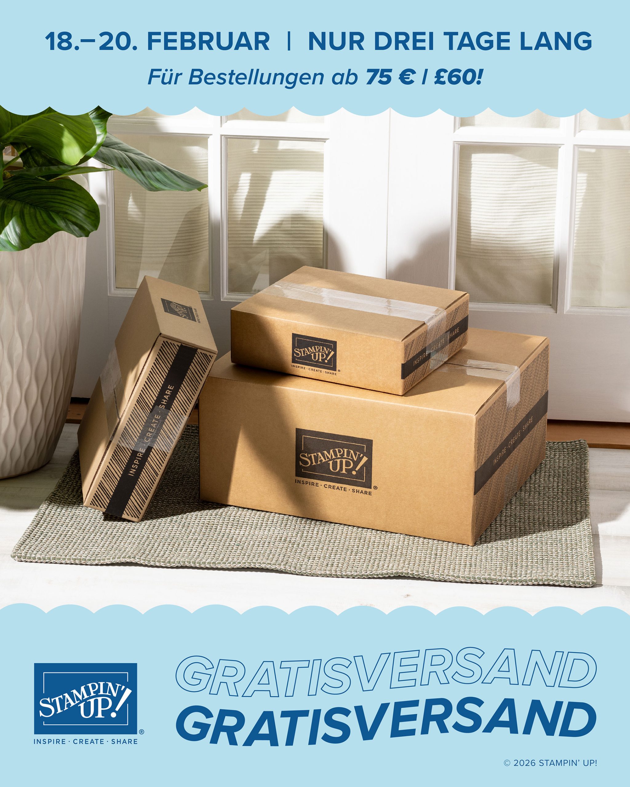 Vom 18. bis 20. Februar 2026 bietet Stampin‘ Up! für Bestellungen ab 75 € Gratisversand.